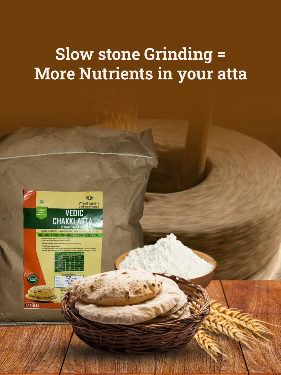 ⭐ "Ever since I started using Vedic Thanda Atta, the rotis at home taste so much softer and more flavorful. Knowing it’s stone-ground and natural makes me feel I’m giving my family the healthiest choice."